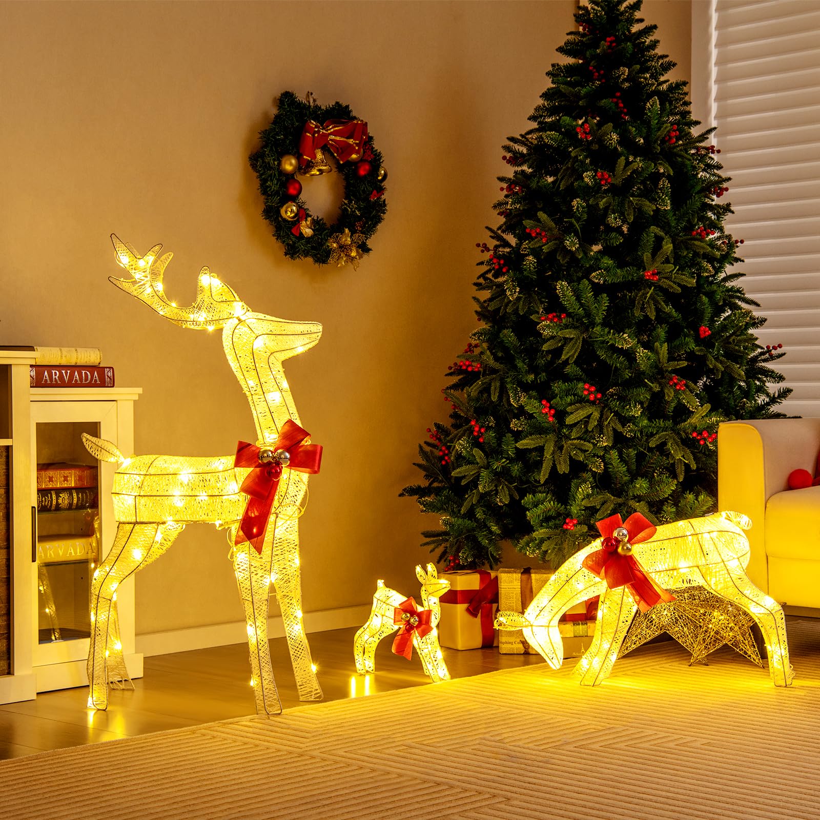 3 Pieces Lighted Reindeer Family Set with 230 LED Lights for Patio/Garden/Party