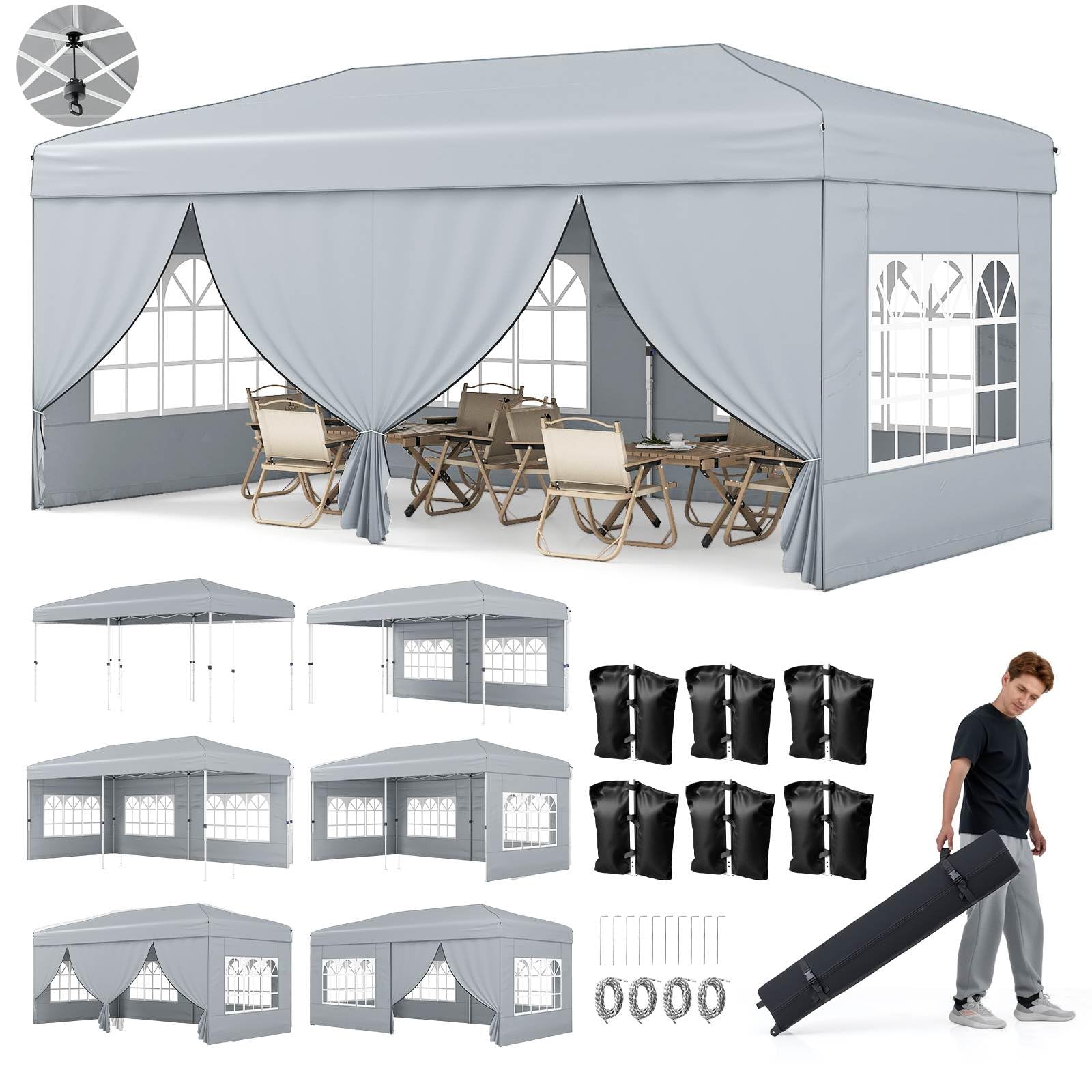 3 x 6 m Pop up Canopy Tent with 6 Sidewalls and Wheeled Bag