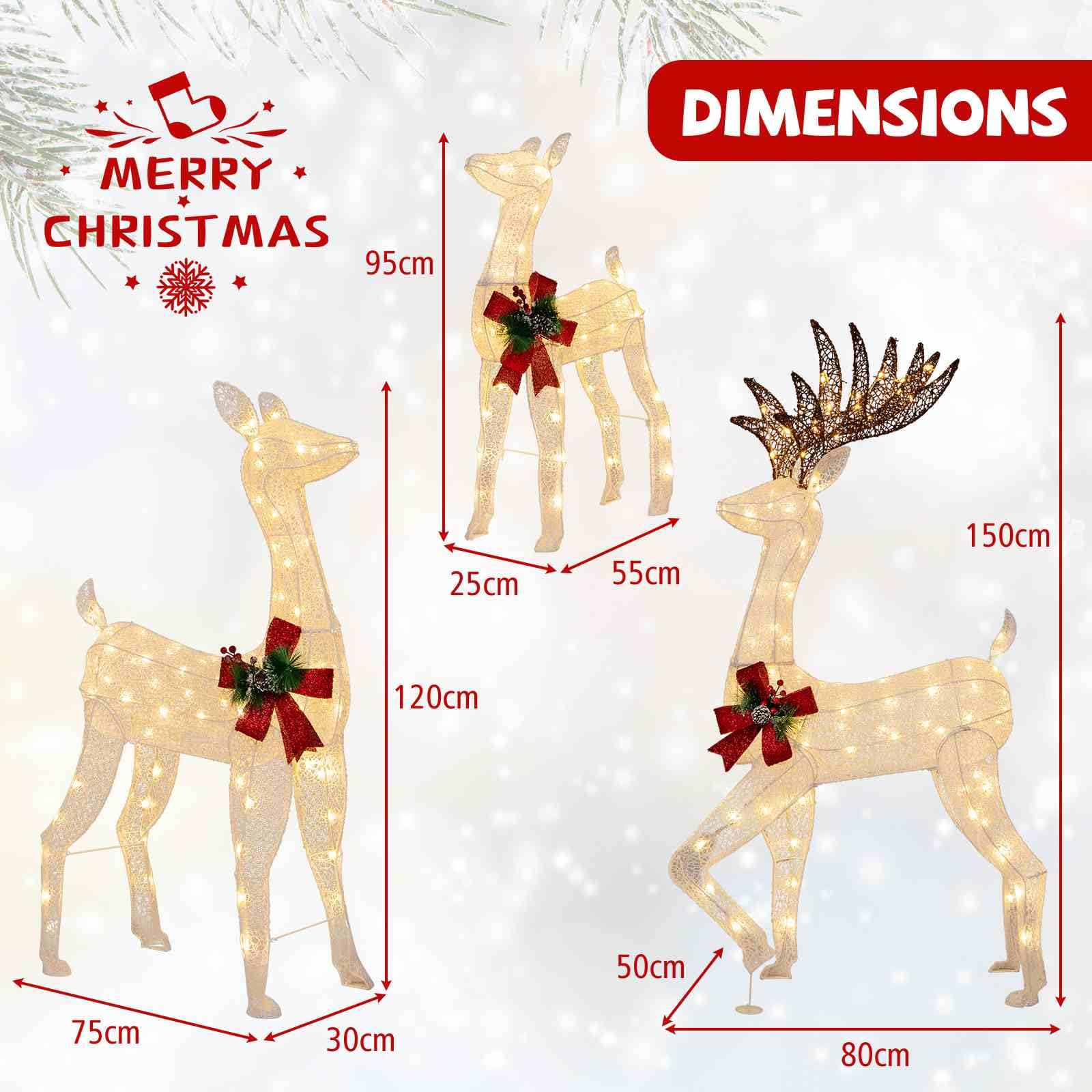 3D Lighted Christmas Reindeer Family Decoration Set of 3 with 230 Warm Color LED Lights