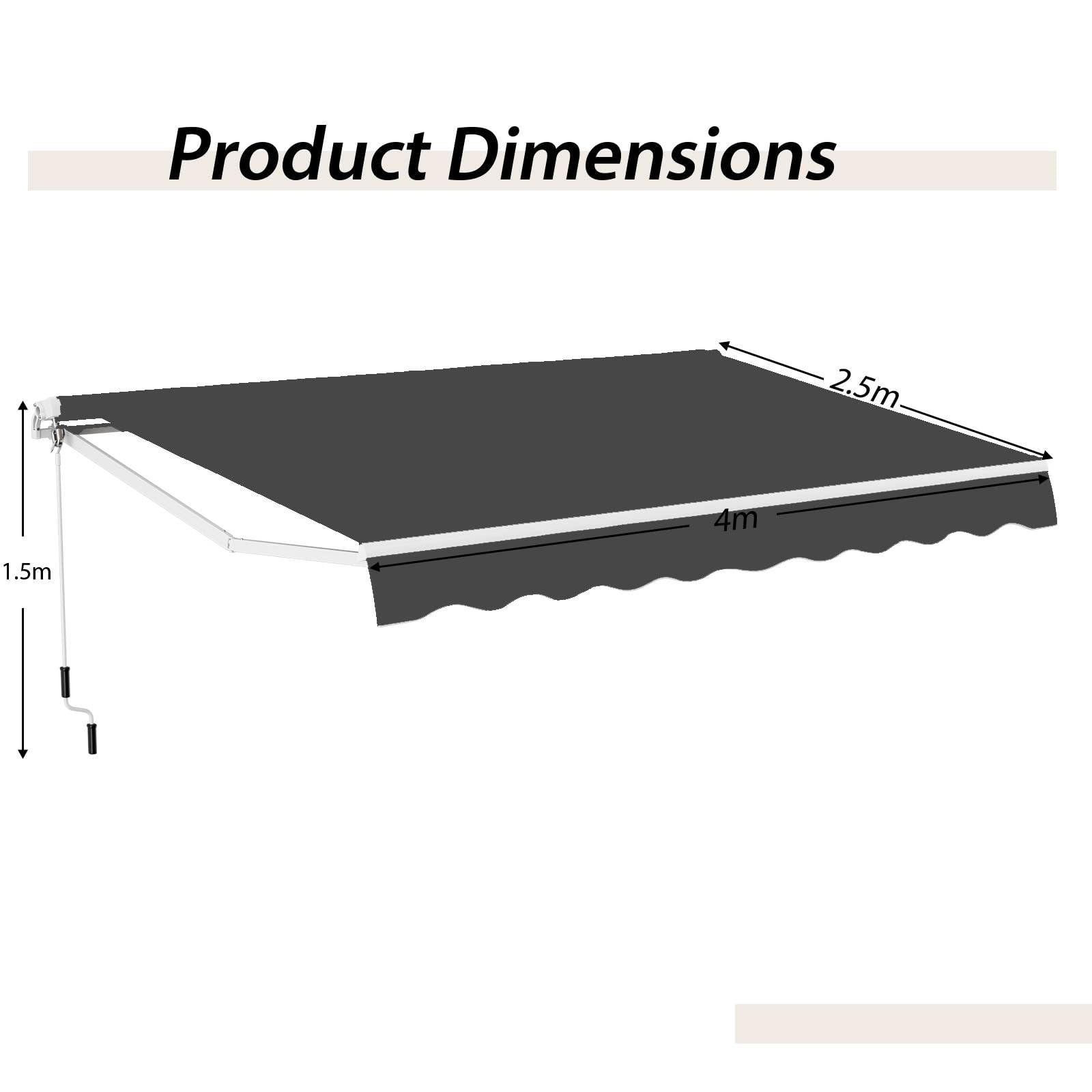 Effortless Manual Control: Say goodbye to complicated mechanisms - the 1.5 m manual hand crank on this patio retractable awning makes opening and closing a breeze. No need to climb or strain yourself, just rotate the handle for a quick operation.