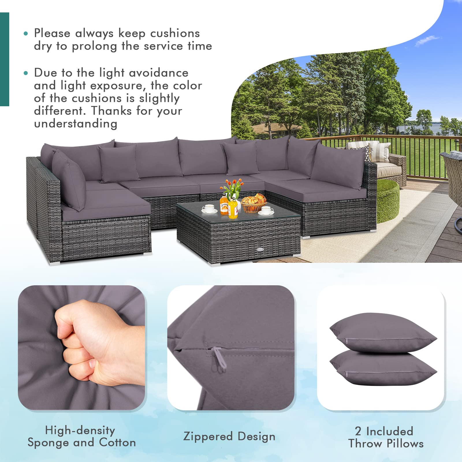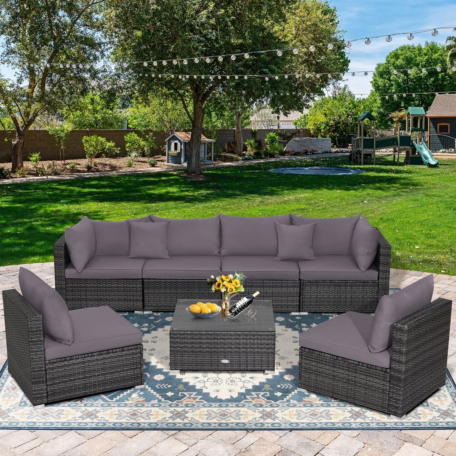 7 Piece Outdoor Sofa Set, Patio Rattan Conversation Set w/Seat & Back Cushions