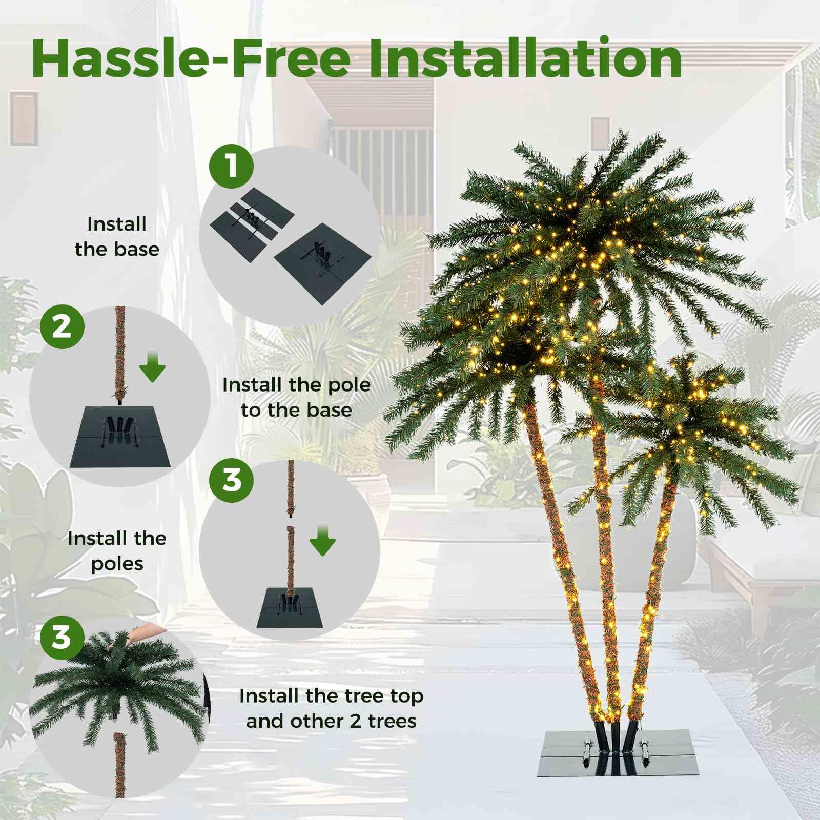 Hassle-Free Installation: The 3 palm trees come with a shared metal base for easy setup. This efficient design allows you to transform your space into a tropical oasis without the hassle.