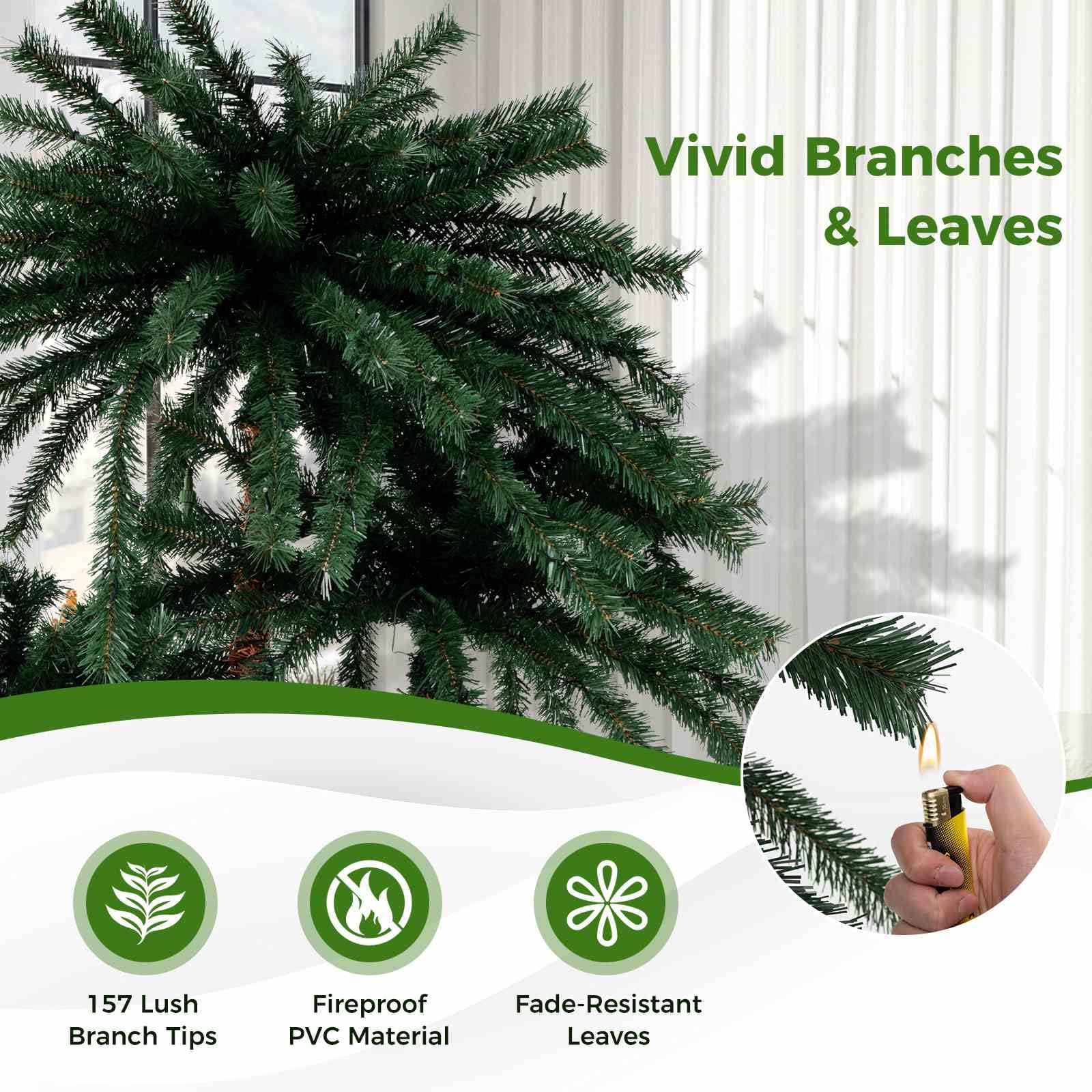 High-Quality PVC: The 157 lush branch tips with fade-resistant leaves are crafted from fireproof PVC material, which ensures that your tree will maintain vibrant green color and realistic appearance year after year.