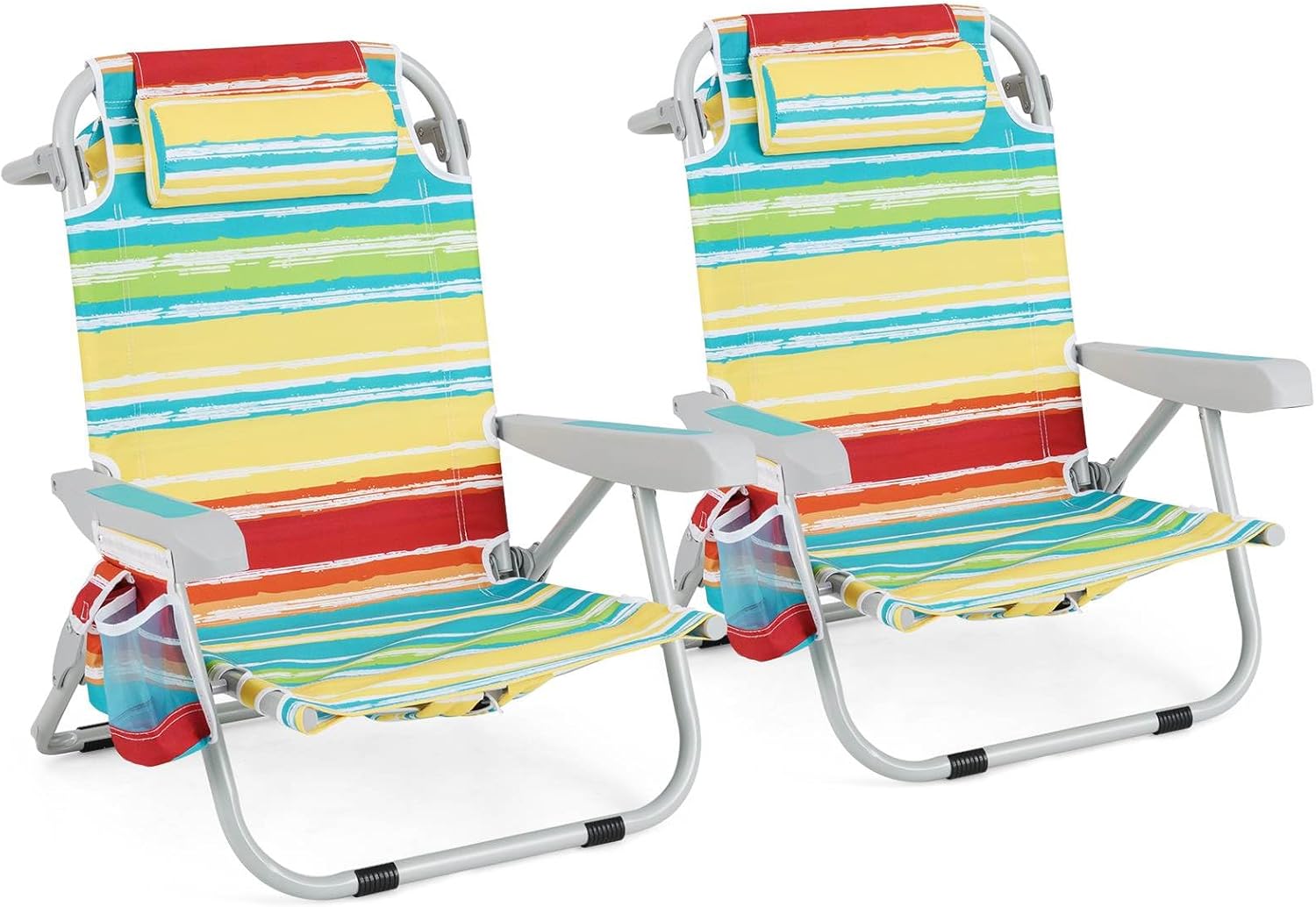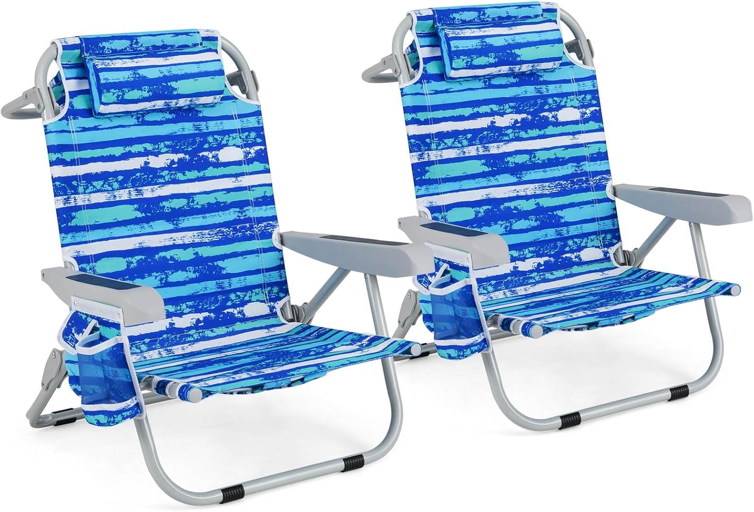 Backpack Beach Chair, Foldable 5-Position Lay Flat Lounge Chair w/Cup Holder, Storage Pockets