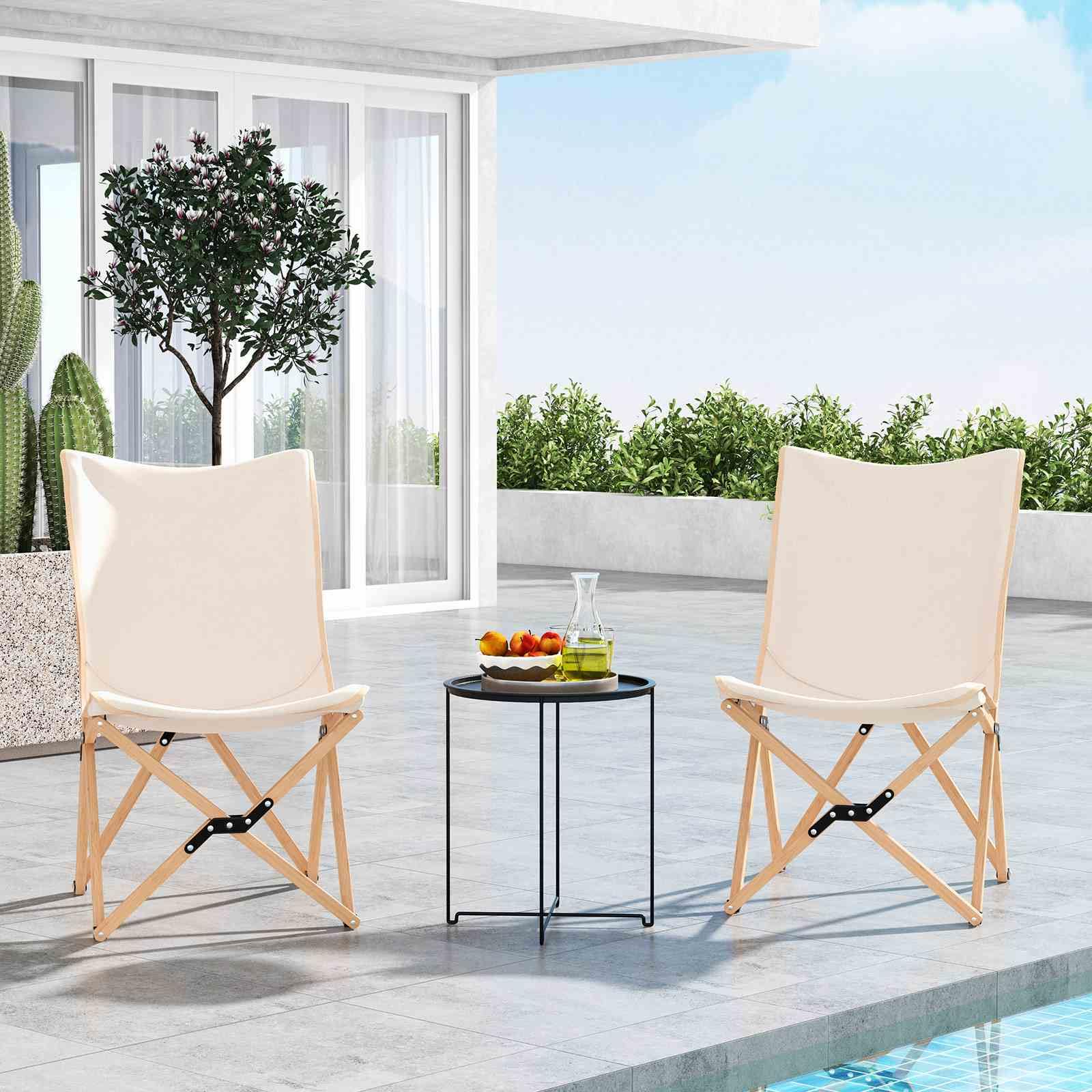 Butterfly Folding Chair Set of 2 with Storage Pocket and Sturdy Base