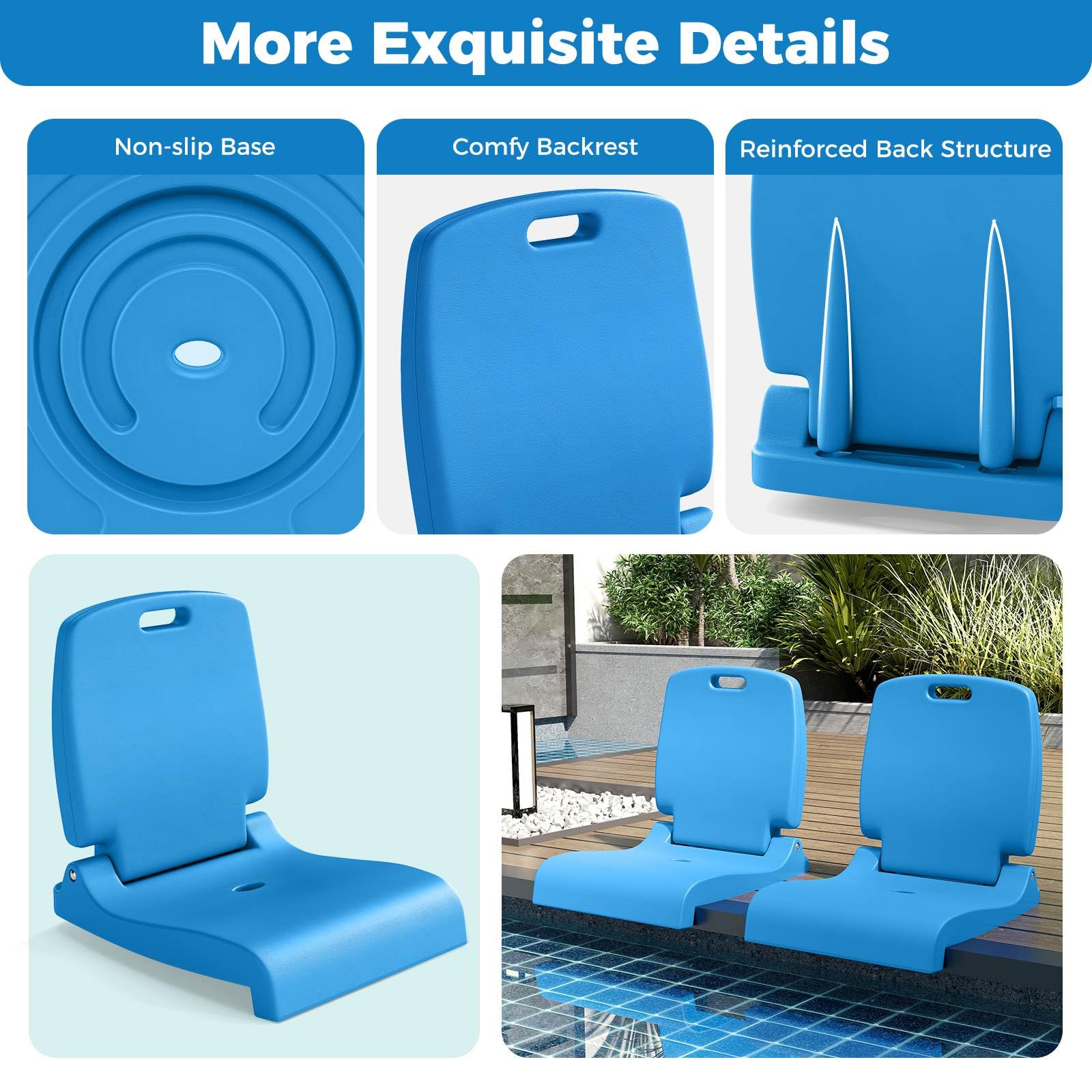 Selected Material and Comfy Support: Made from high-quality PE material, this outdoor pool chair is fade-resistant and reliable, while the waterproof surface makes it easy to clean. The comfortable backrest with reinforced structure provides excellent support, making it comfortable for extended periods of sitting.