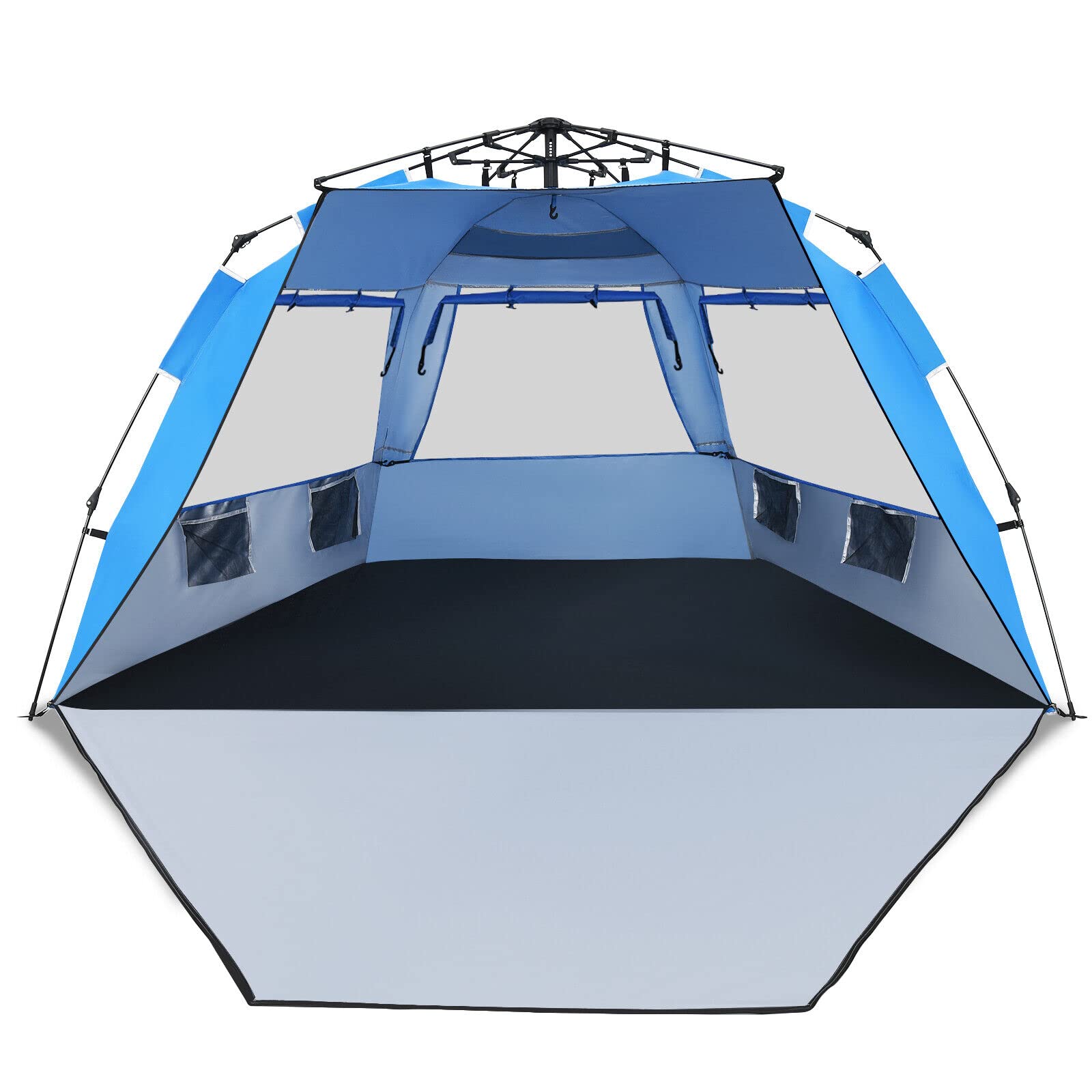 Automatic Pop-up Design and Easy Carrying: The beach shade tent is equipped with an automated hydraulic system that allows you to pop up or take down the tent in minutes. Furthermore, equipped with a compact & lightweight carrying bag, the tent is easy to store and transport.