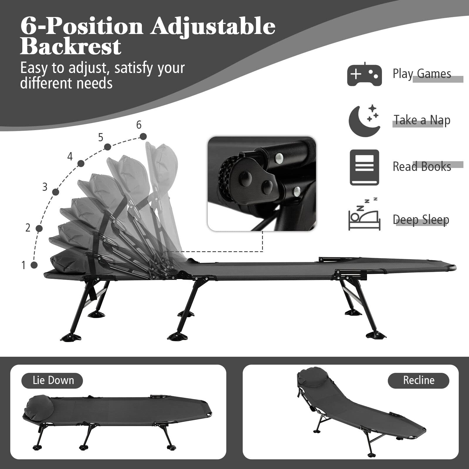 Folding Camping Cot with Detachable Mattress and Adjustable Backrest
