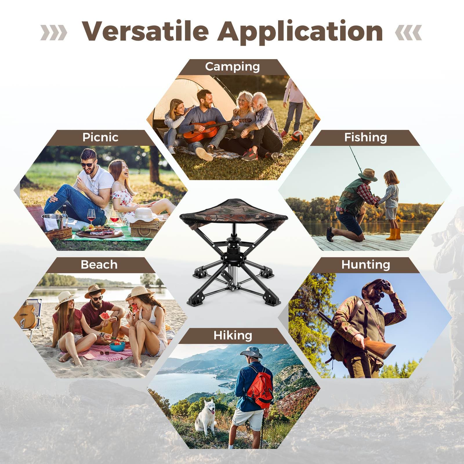 Folding Camping Stool 360° Swivel Hunting Chair with Anti-Sink Feet