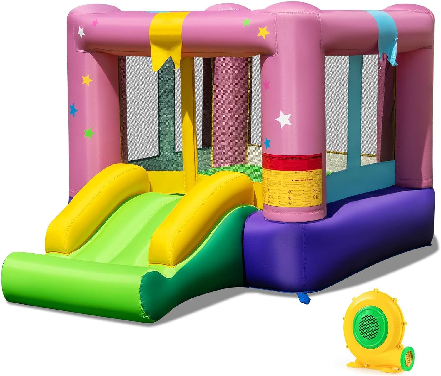 Indoor Outdoor Blowup Bouncy House w/Carrying Bag, Repair Kit & Ground Stakes