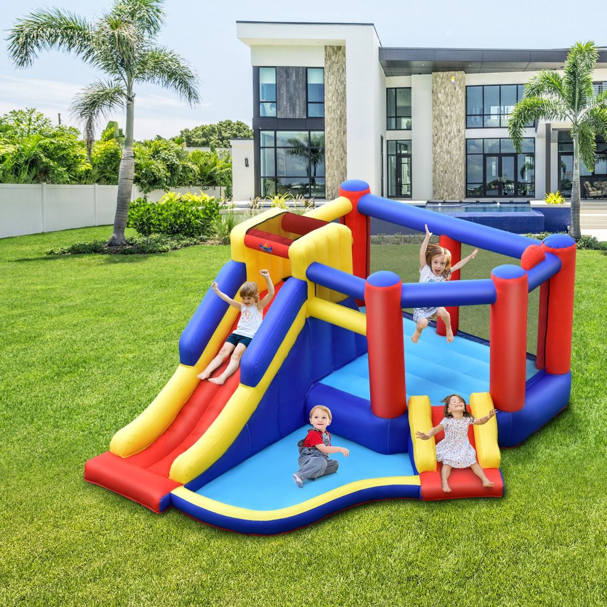 A Variety of Fun: The inflatable bouncy castle combines 2 slides, a ball pit, a jumping area, a basketball hoop and a climbing wall, providing endless fun to entertain kids. Moreover, the bounce castle also comes with an inflatable basketball, which allows kids to practice shooting and adds more fun.