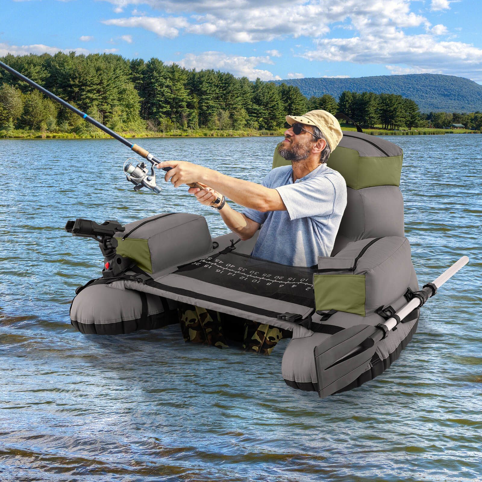 Fishing-Friendly Design: Equipped with an adjustable and removable fishing rod holder tailored for your comfort, this tube facilitates optimal positioning and angle for fishing. It also includes a detachable fish ruler, making it easier to measure your catch right on the spot, optimizing your fishing experience.