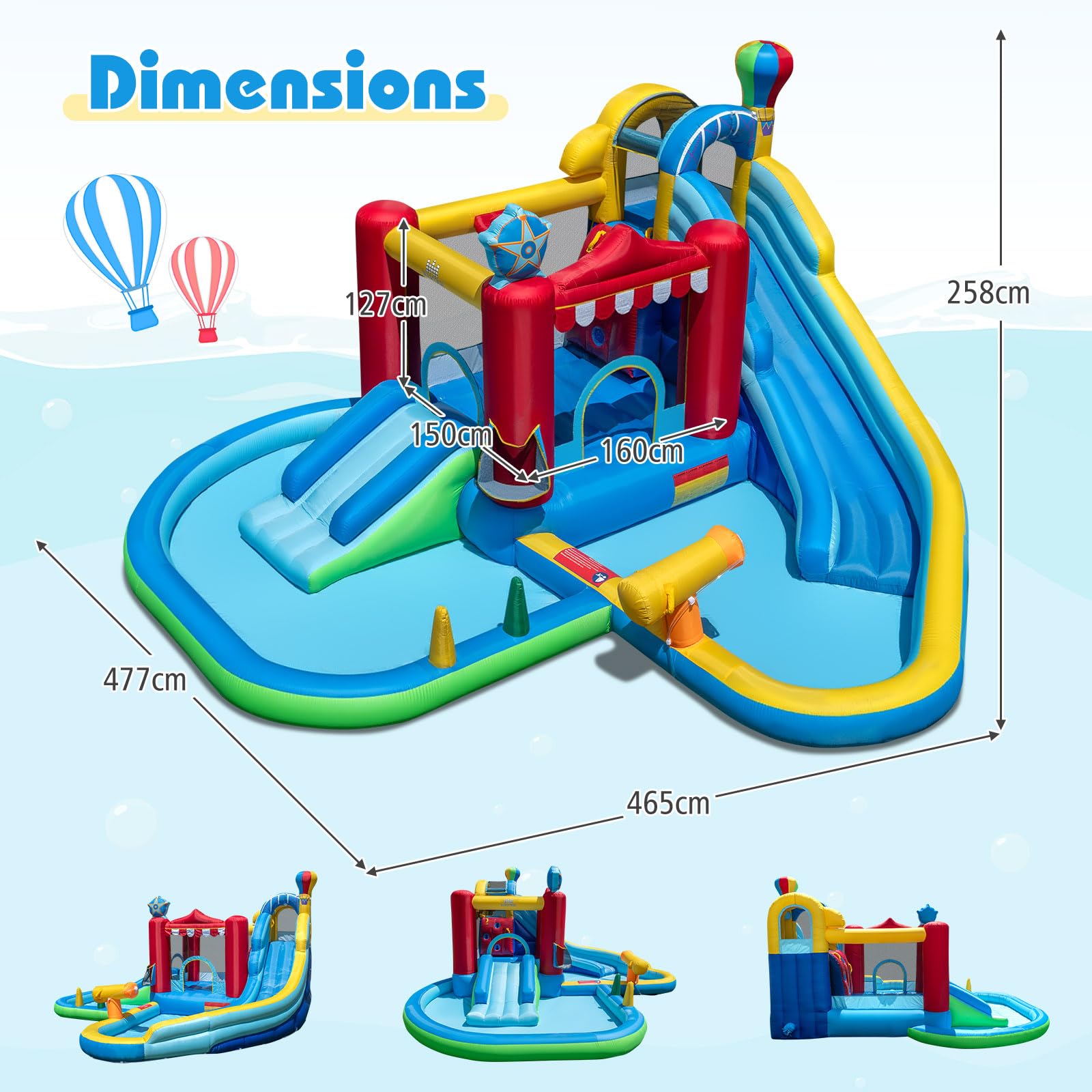 Inflatable Water Park, Water Slide w/Splash Pool, Water Cannon