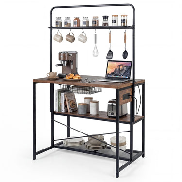 Kitchen Island with Power Outlet, Metal Coffee Bar Table