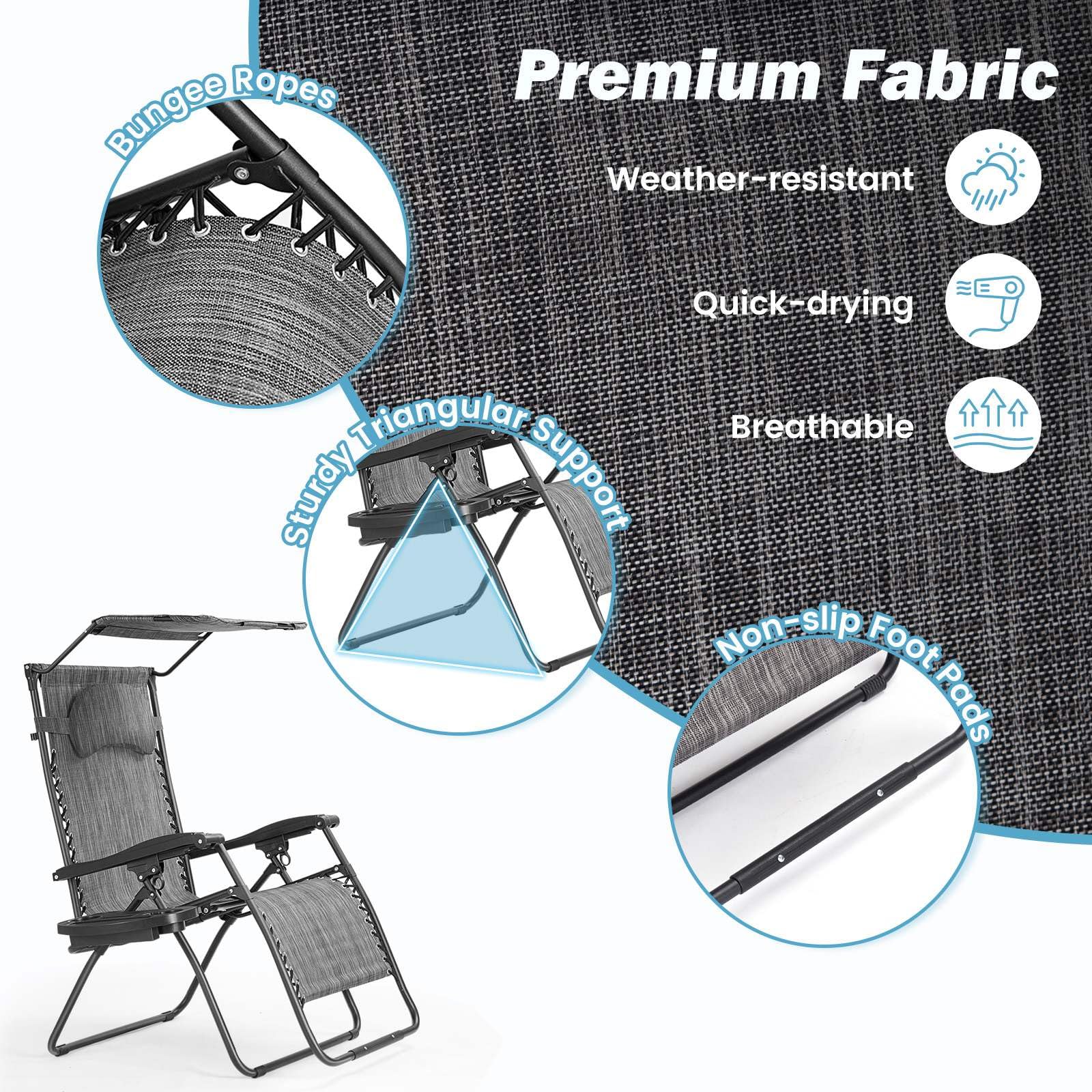 Crafted with a sturdy steel frame and weather-resistant fabric fabric, this chair is built to last. The inverted triangle structure ensures exceptional stability, while the ergonomic design helps alleviate muscle tension and stress, providing unmatched comfort as you recline. Easily adjust the chair to your preferred position and lock it in place for uninterrupted relaxation. Complete with a soft pillow and an adjustable sunshade canopy, this chair keeps you cool and comfortable during breaks. Its foldable design makes storage and transportation a breeze. Perfect for your yard, home, poolside, or garden, this chair seamlessly fits into any setting.