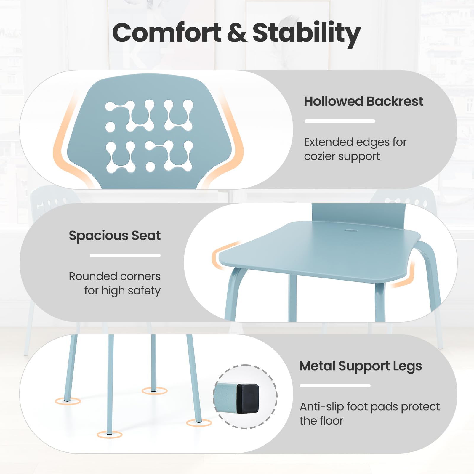 dining chair set of 4, kitchen chair set, modern accent side chair, metal leisure chair