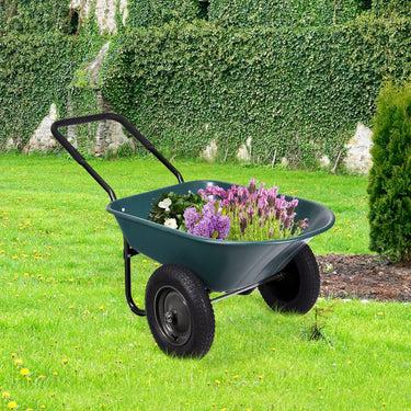 - Rugged & Durable Steel Frame: Made of heavy-duty steel material, the 2 tire wheelbarrow ensures high strength and great sturdiness for long-term use. Moreover, the PP container features long-lasting performance. Coming with anti-rust and solid screws, the parts of this garden cart are tightly connected with each other.