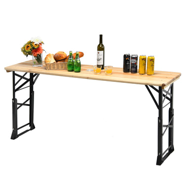 Have you found desirable folding picnic table? Our patio picnic table provides an ideal place for your outdoor leisure time. Crafted with premium wood and heavy-duty metal frame, this picnic table is sturdy and strong enough for long-term use. X-shape structure also adds stability to the table. This picnic table features 2 adjustable heights fulfilling different requirements. The wide tabletop provides enough space for food and drinks while the umbrella hole is designed for sun protection. Folding design makes it easy to store or carry. It is perfect for your outdoor activities, or just using in your garden.
