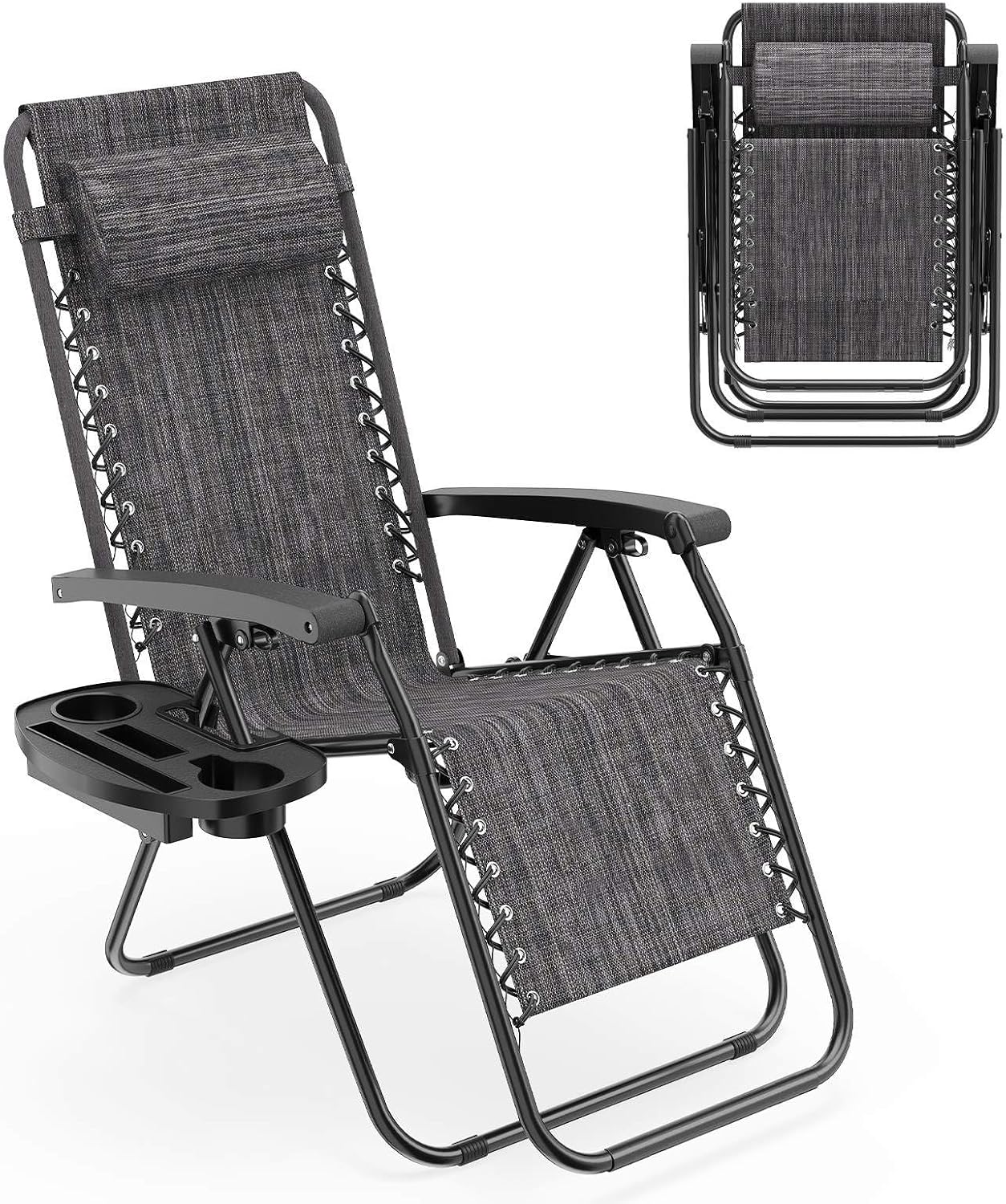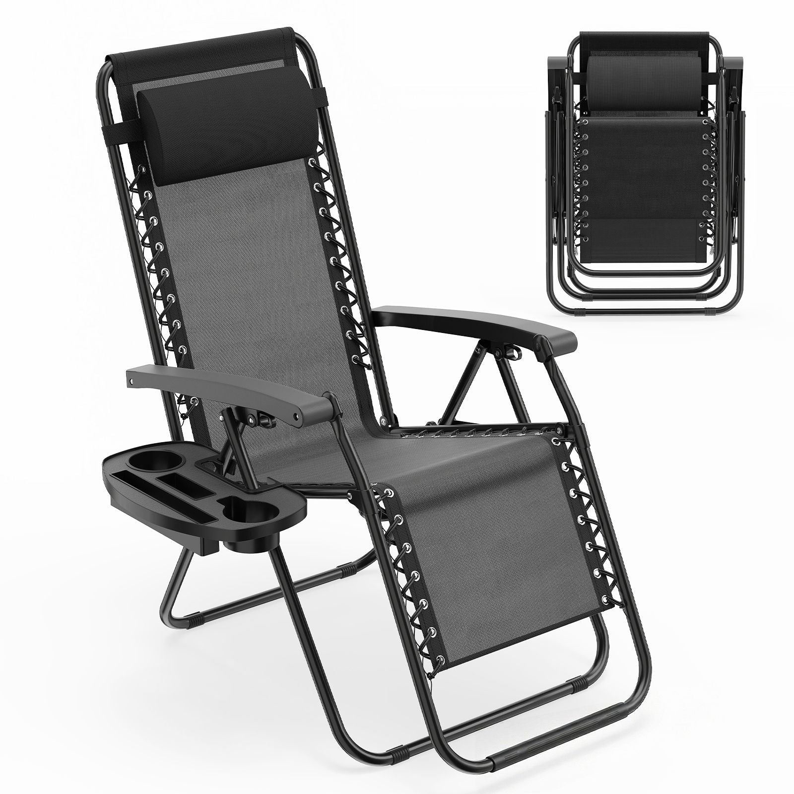 Patio Zero Gravity Lounge Chair with Cup Holder & Removable Pillow