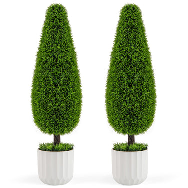 Featuring dense leaves and grass, the artificial greenery decoration quite captures the beauty of a realistic cedar topiary. With distinctive teardrop shape, the artificial cedar tree topiary is a true masterpiece that can elevate any space. Furthermore, the metal trunk is wrapped with simulated vine to combine stability and realism. The leaves are crafted from non-fading PE material, which allows both indoor and outdoor use. For those seeking to enhance their living spaces without the hassle of regular maintenance, the fake potted plant is the perfect solution. You can simply place it in your home, front porch or restaurant with minimal upkeep.