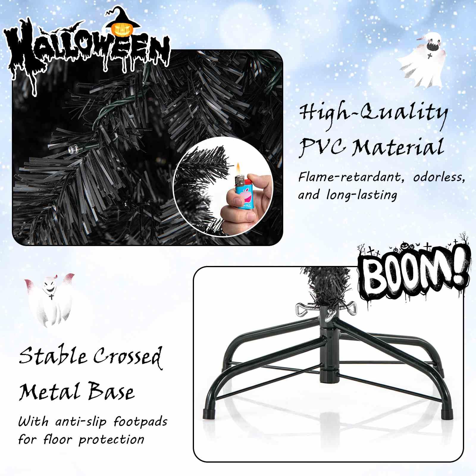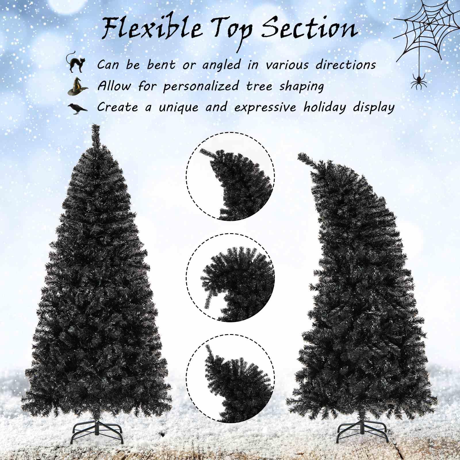 Pre-Lit Black Artificial Christmas Halloween Tree with Bendable Top Section