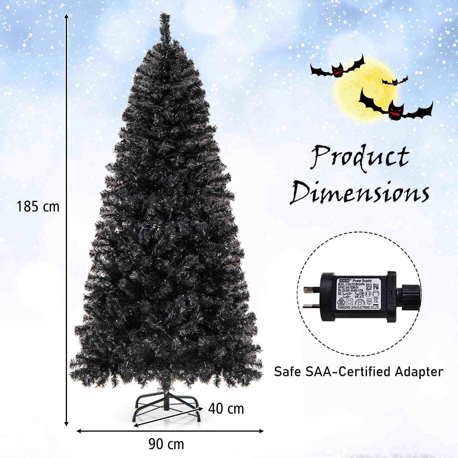 Stunning Appearance: Adorned with 726/1050 lush branch tips and 260/340 warm white LED lights, this Christmas tree looks vivid and full-bodied, while adding a captivating glow when the lights are on. Moreover, the unique black leaves distinguish it from traditional green trees, providing an elegantly distinctive twist.