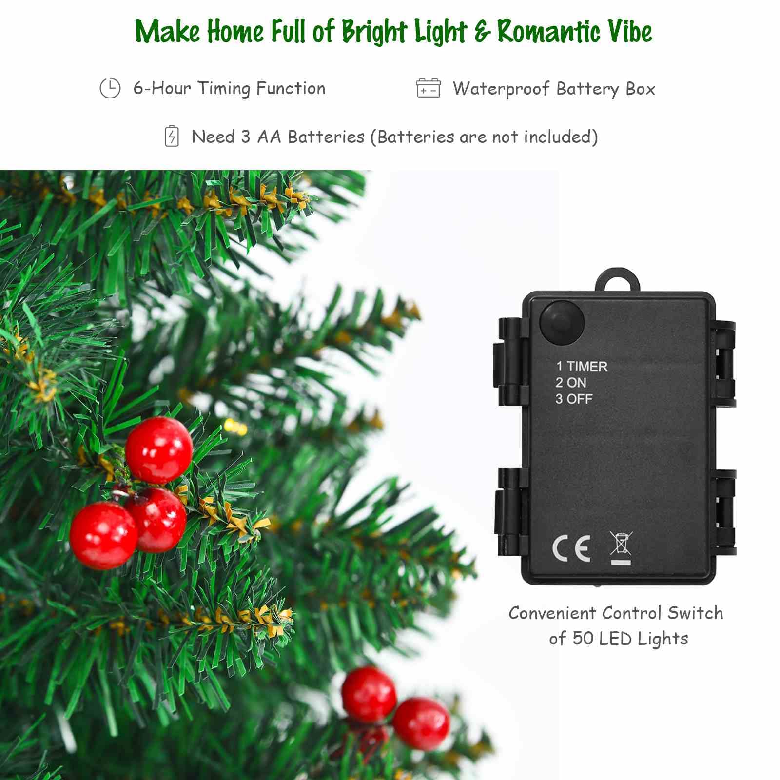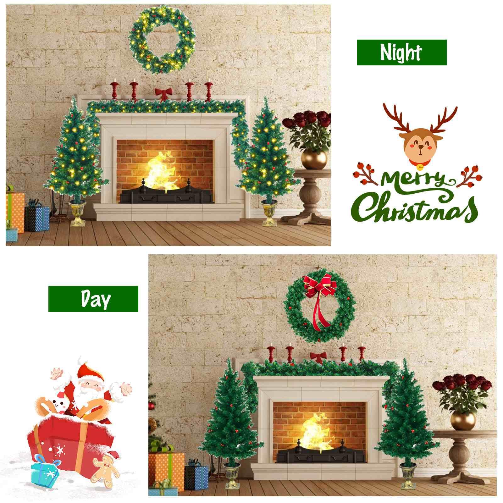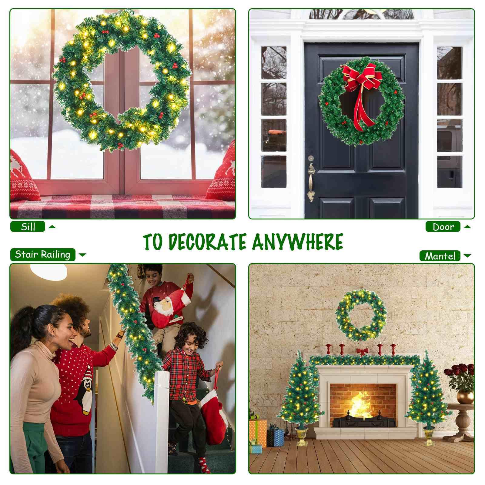 Pre-Lit Holiday Christmas 4-Piece Set with 200 LED Lights and Red Berries