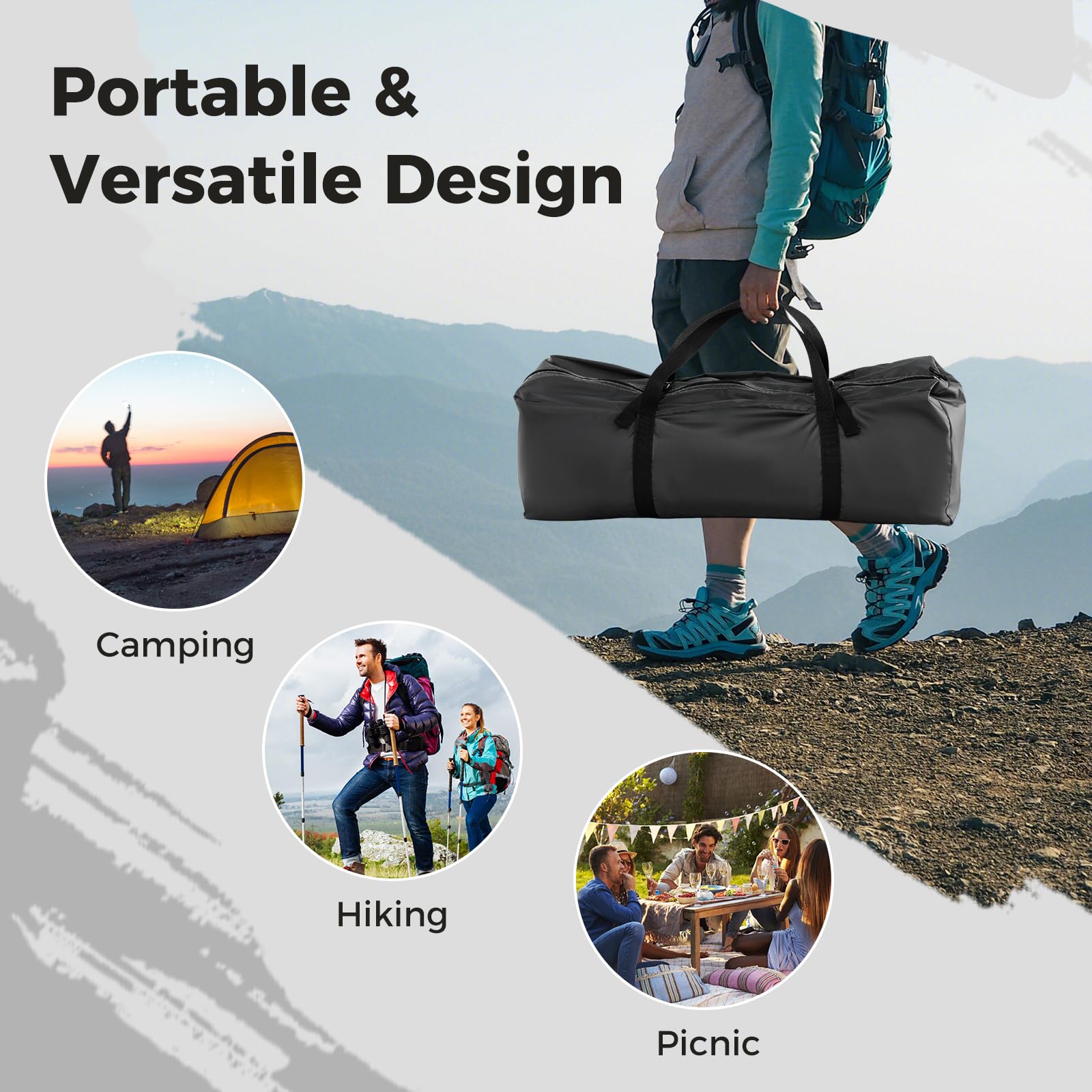 Waterproof and Durable Material: The tent canopy is crafted of premium 190T polyester fabric, which provides excellent sun protection and PU 2000 mm water resistance, ensuring long-term outdoor use. Additionally, it is not easy to wear or tear for enhanced durability. (Note: Please avoid using it in heavy rain.)