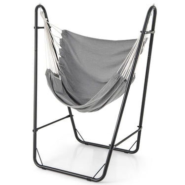 Crafted from skin-friendly fabric, this hanging chair offers a comfortable spot for your leisure time. Comfort meets convenience with the addition of a side storage pocket, allowing you to keep your essentials within easy reach. The heavy-duty metal stand ensures sturdiness and security while you relax. Easy to hang with hanging hooks and rope thimbles, this swing chair is a versatile addition to any living room, bedroom, patio, or yard. Whether you prefer to lounge indoors or soak up the sun outdoors, this hammock chair is a brilliant perfect choice.