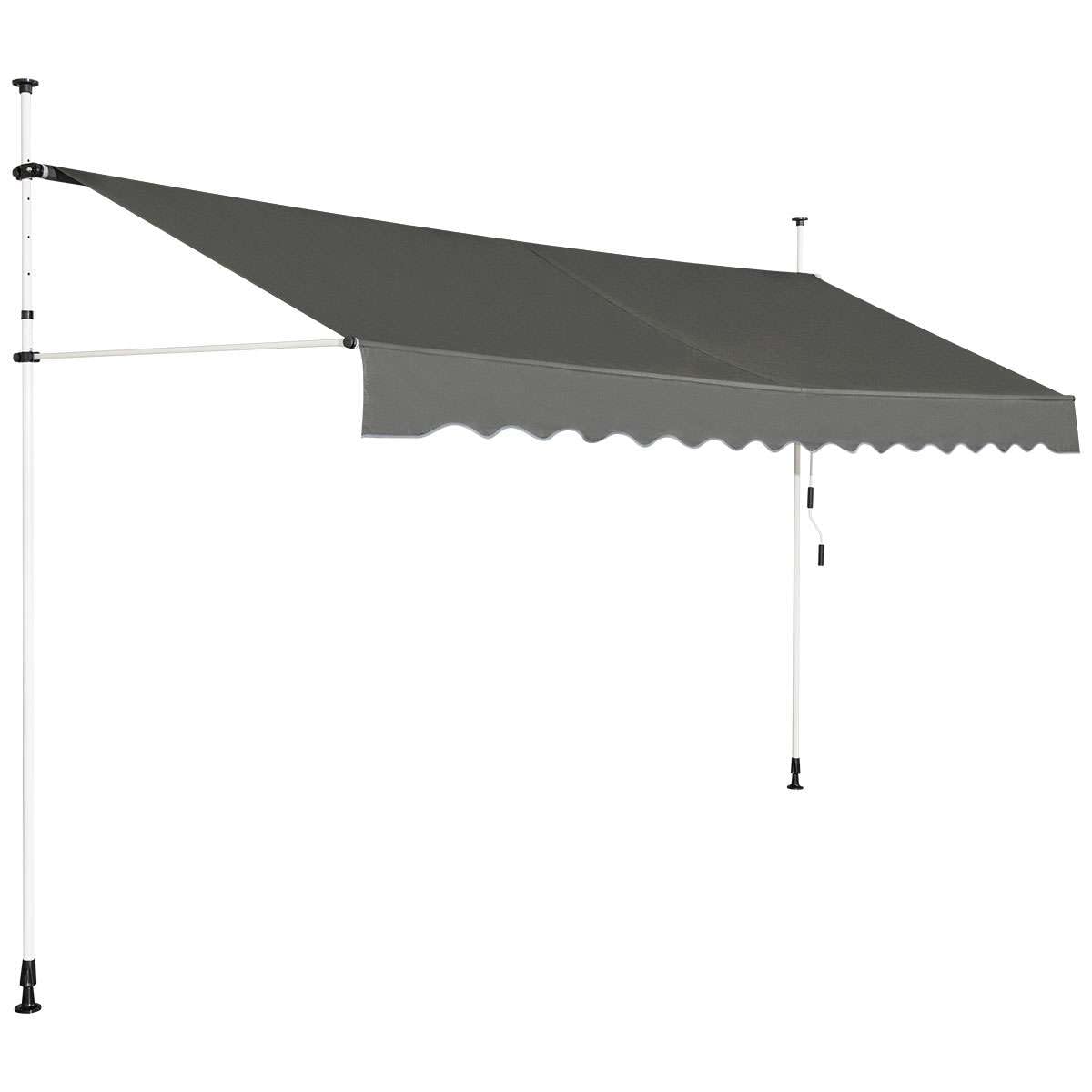 This retractable awning will be ideal for use in front of the window, on the terrace, balcony or in your garden. This weather resistant awning is made of well selected oxford fabric with PU coating. And featuring with lightweight design but solid aluminum frame, this sun shade has a stable and sturdy structure which can resist a certain scale of winds. Thanks to the handle crank, this awning is retractable and the height and the angle of the awning can also be adjusted. This smart design can reduce the harsh glare and provide you with softer light and cooler temperature. This awning is a perfect choice for your outdoor living space and can easily be operated manually.